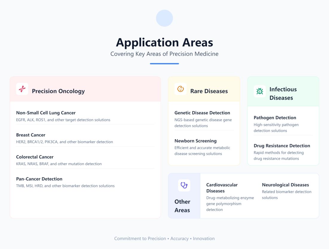 The application of companion diagnostics (CDx) technology has rapidly expanded from the core area of precision oncology to multiple key medical fields such as rare diseases, infectious diseases, cardiovascular diseases, and neurological diseases. With our extensive experience in enzymology and diagnostic development capabilities, we provide stable and efficient core enzyme raw materials and customized solutions for various molecular diagnostic platforms. We are focused on supporting our partners in developing accurate and reliable companion diagnostic products to help achieve patient stratification and personalized treatment.