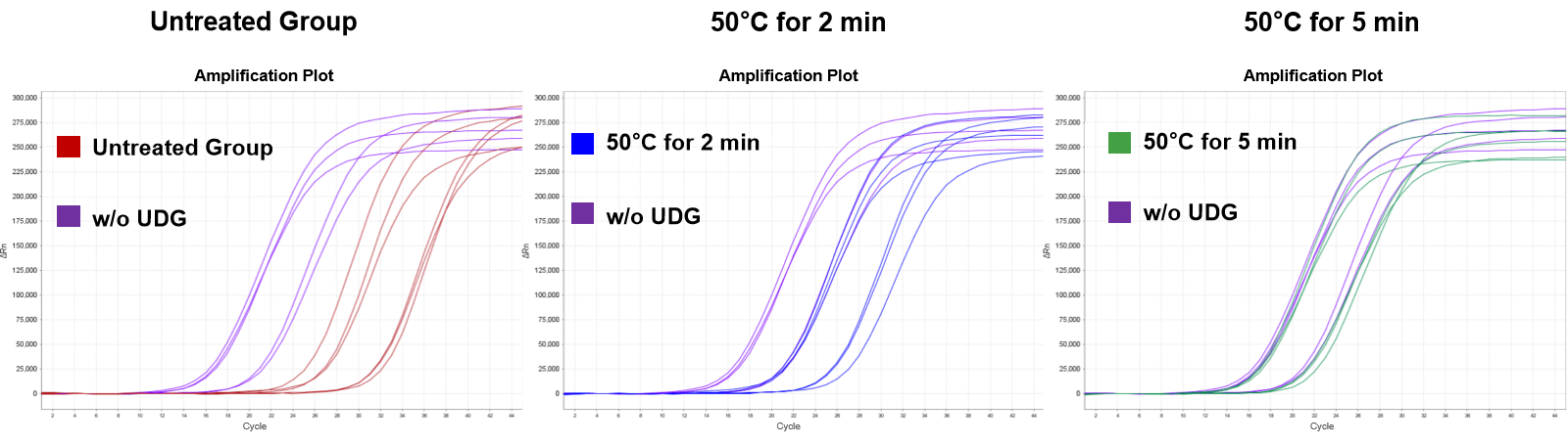 ENZD-P01, an Antarctic-derived thermolabile UDG from Creative Enzymes, was systematically evaluated for its thermal inactivation performance. Incubation at 50°C for 2 minutes resulted in irreversible inactivation of most enzyme activity, while 5 minutes of incubation led to complete inactivation.Data sourced from internal validation studies, demonstrating reliable inactivation behavior with consistent results.